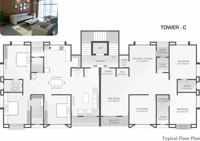 | Penthouse | 4 Bed + 3 Bathroom | 3600 | On Request | Tower C | 1 | |