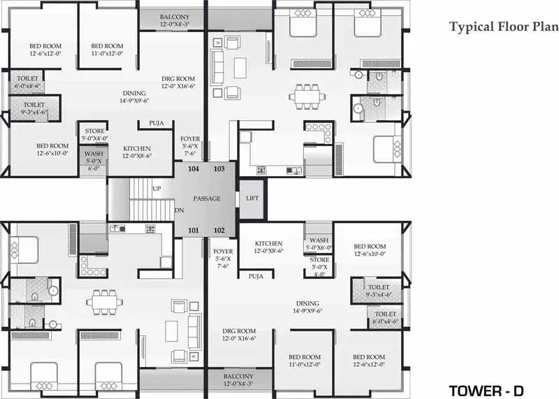 | Penthouse | 4 Bed + 3 Bathroom | 3600 | On Request | Tower C | 1 | |